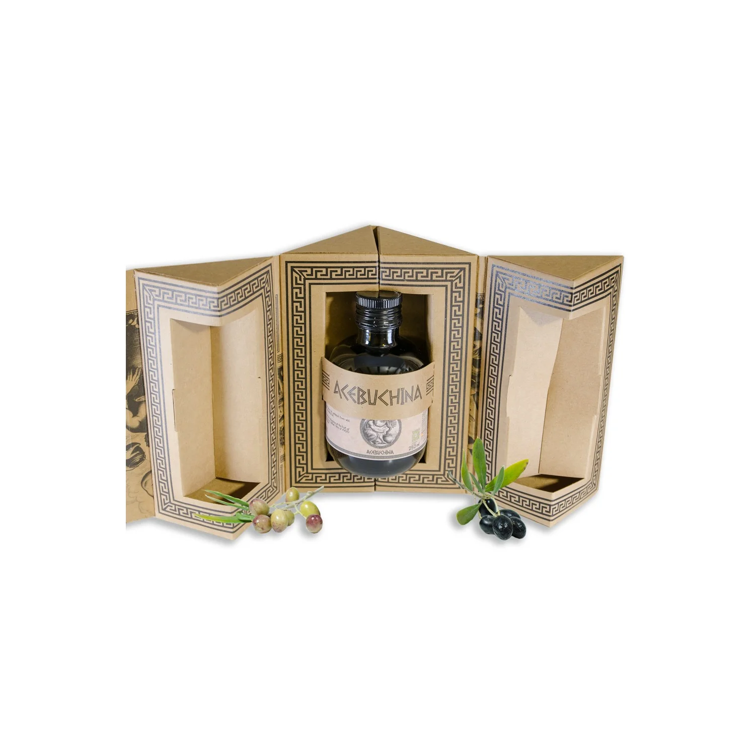 Made from acebuchinas, small olives from the wild olive tree (acebuche), recognized for their uniqueness and nutritional richness.