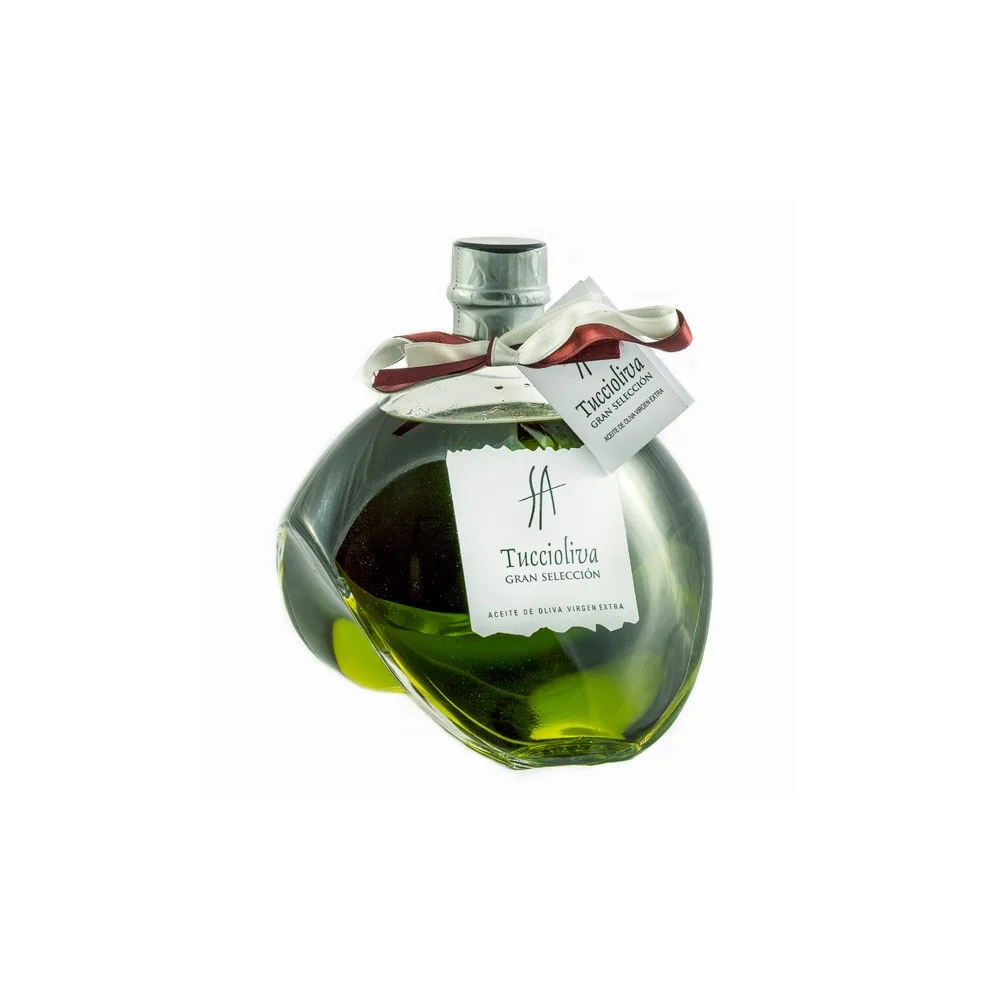 Tuccioliva Gran Selección, is made with green olives that are just at the edge of ripening to a darker color. These olives are handled with the utmost care as they make their way from grove to bottle, preserving their clean, fresh scent, which reminds us of the olive tree itself, its leaves, branches and fruit, as well as the almond, apple and pear trees that grow in our region. On the palate, Tuccioliva oil is delicate and fragrant, with pleasing peppery and spicy notes that mix with the scent of sweet, aromatic herbs.
