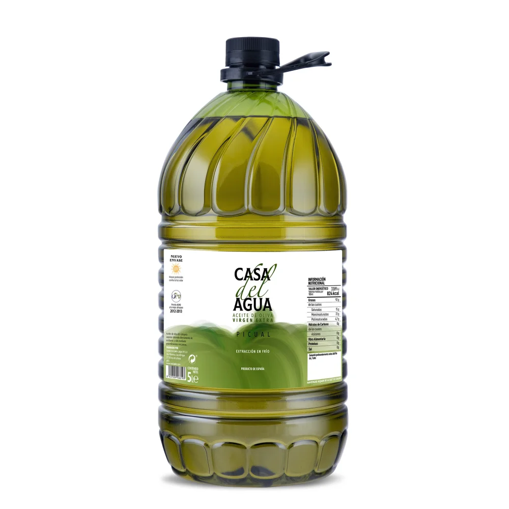 Extra virgin olive oil made 100% from the picual olive variety. Is more mature oil than the Family Reserve. The harvesting time is slightly, but only slightly later on in the campaign, therefore giving a lighter fruity flavour. Casa del Agua is bottled in glass and PET formats, this material being used for large consumption or family use.