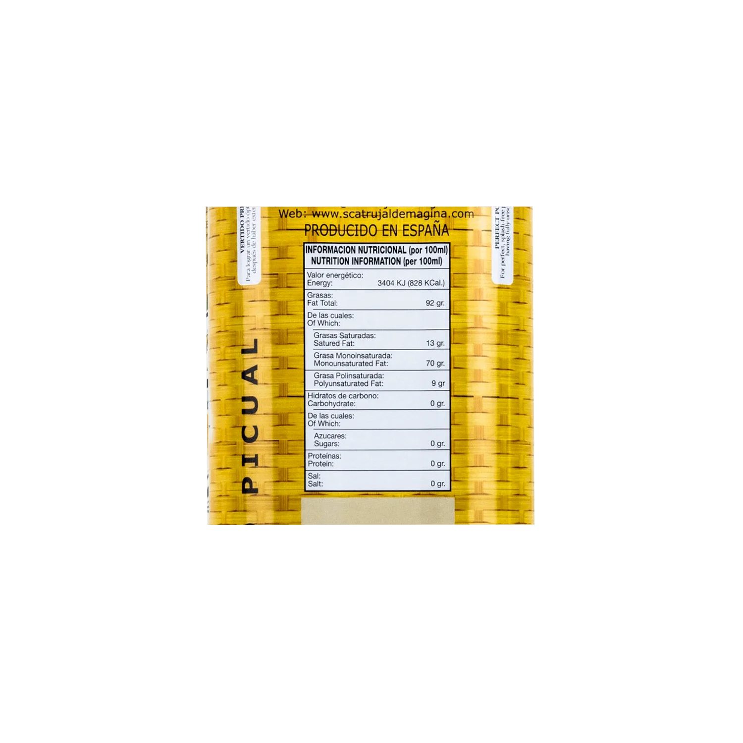 Organic oil, Monovarietal picual. Acidity of 0.13 º.