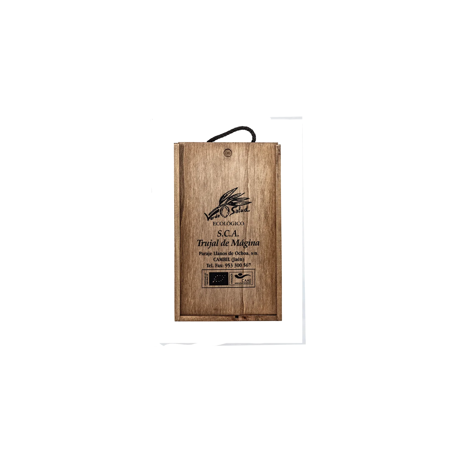 Extra virgin olive oil from picual olives developed in Cambil (Jaen) protected by the Designation of Origin Sierra Magina. An oil awarded for its excellent quality from 100% organic crop. An oil awarded for its excellent quality, from 100% organic cultivation. The case includes: