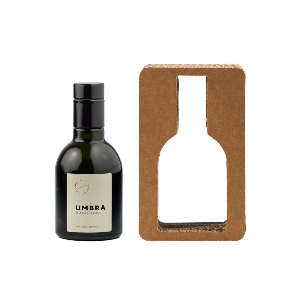 El aceite Deortegas Umbra es un aceite aromático creado en colaboración con el chef murciano David López, del restaurante Local de Ensayo, que fusiona el aceite de oliva virgen extra cornicabra con distintas setas, plantas aromáticas, ajo morado de Las Pedroñeras y extracto natural de musgo.
