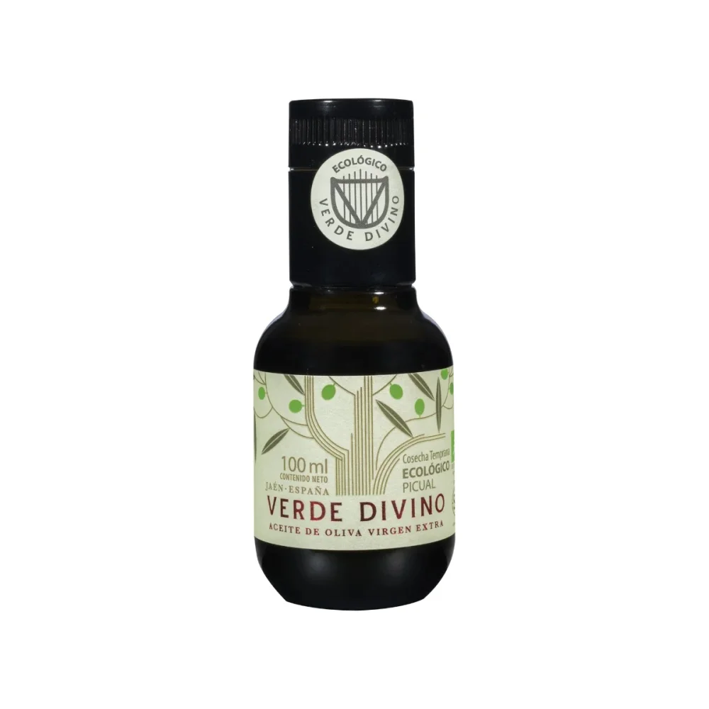 Aceite de oliva virgen extra ecológico 100 ml de variedad picual de cosecha temprana. Procedente de un cultivo 100% ecológico en el que se mantiene un total respeto por la naturaleza con una elaboración realizada exclusivamente con procesos tradicionales.