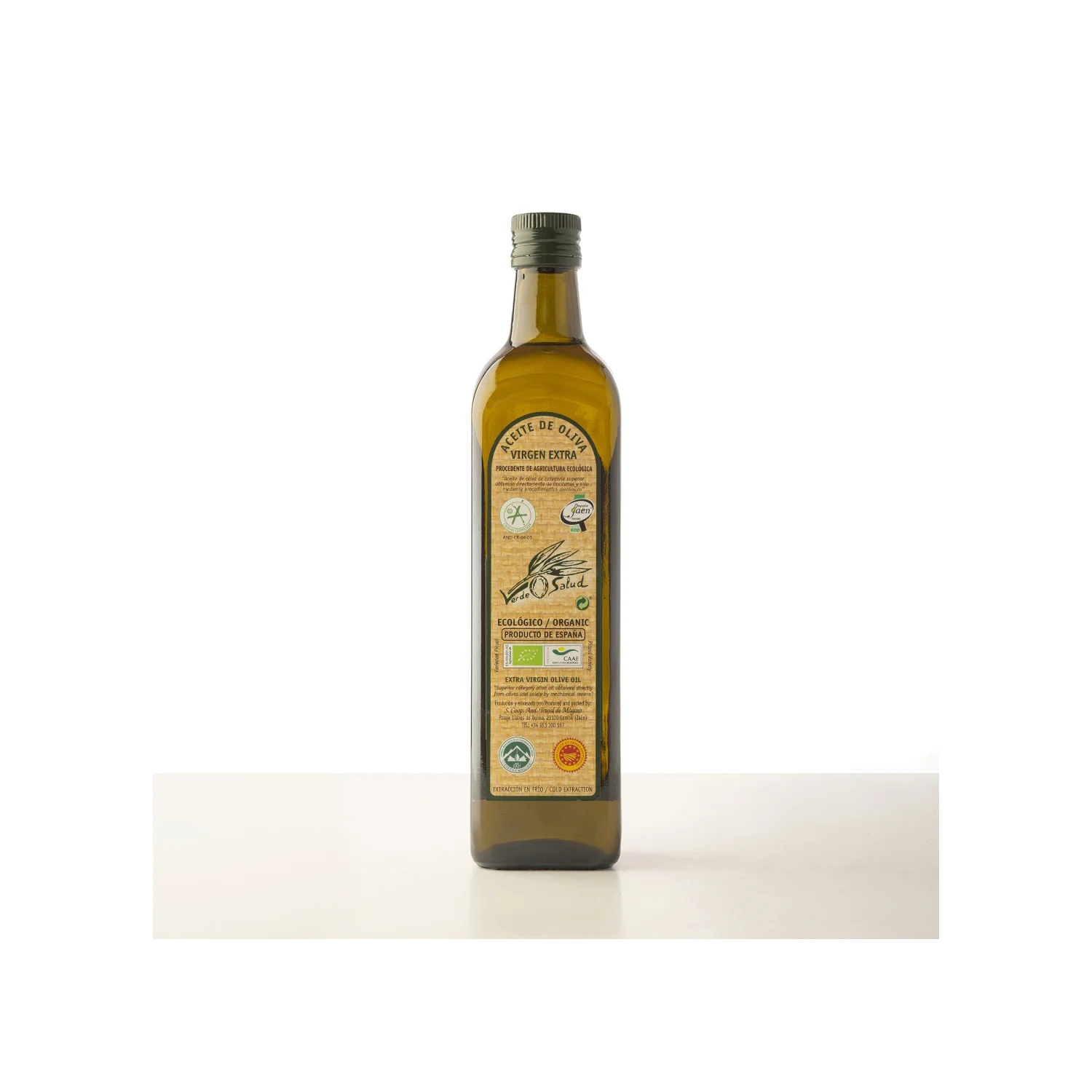 Verde Salud es un aceite de oliva virgen extra ecológico de variedad picual y con Denominación de Origen Sierra Mágina.