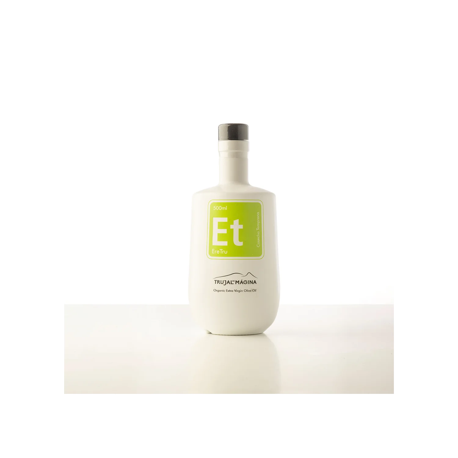 Eretru es un aceite de oliva virgen extra de producción ecológica obtenido por extracción en frío entre 22ºC y 24ºC, de aceitunas de la variedad picual recolectadas en su momento óptimo de maduración en los meses de Octubre y Noviembre. Alto contenido en antioxidantes y polifenoles.