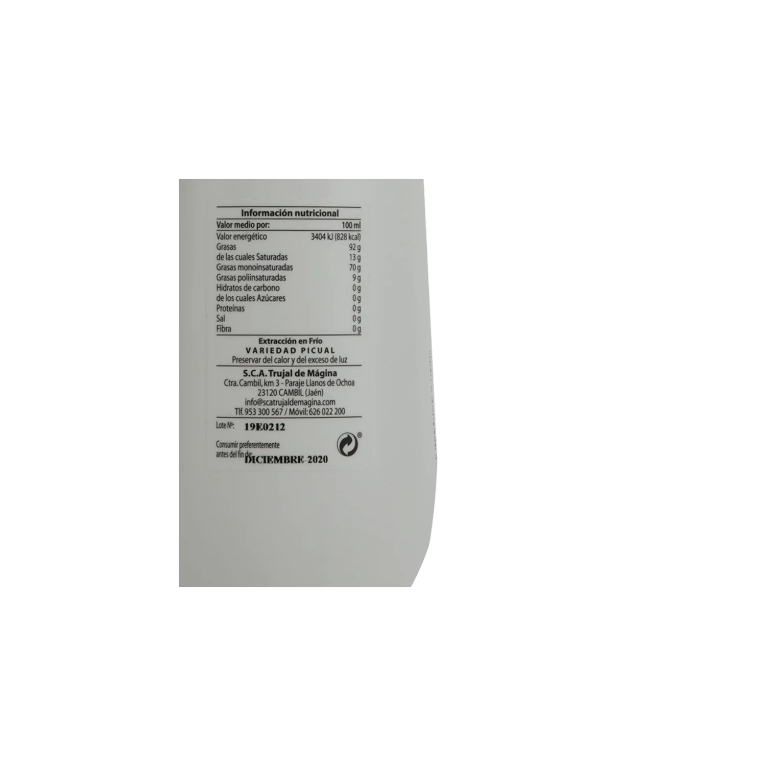 Ecológico monovarietal de aceituna picual. Acidez de 0.13º.