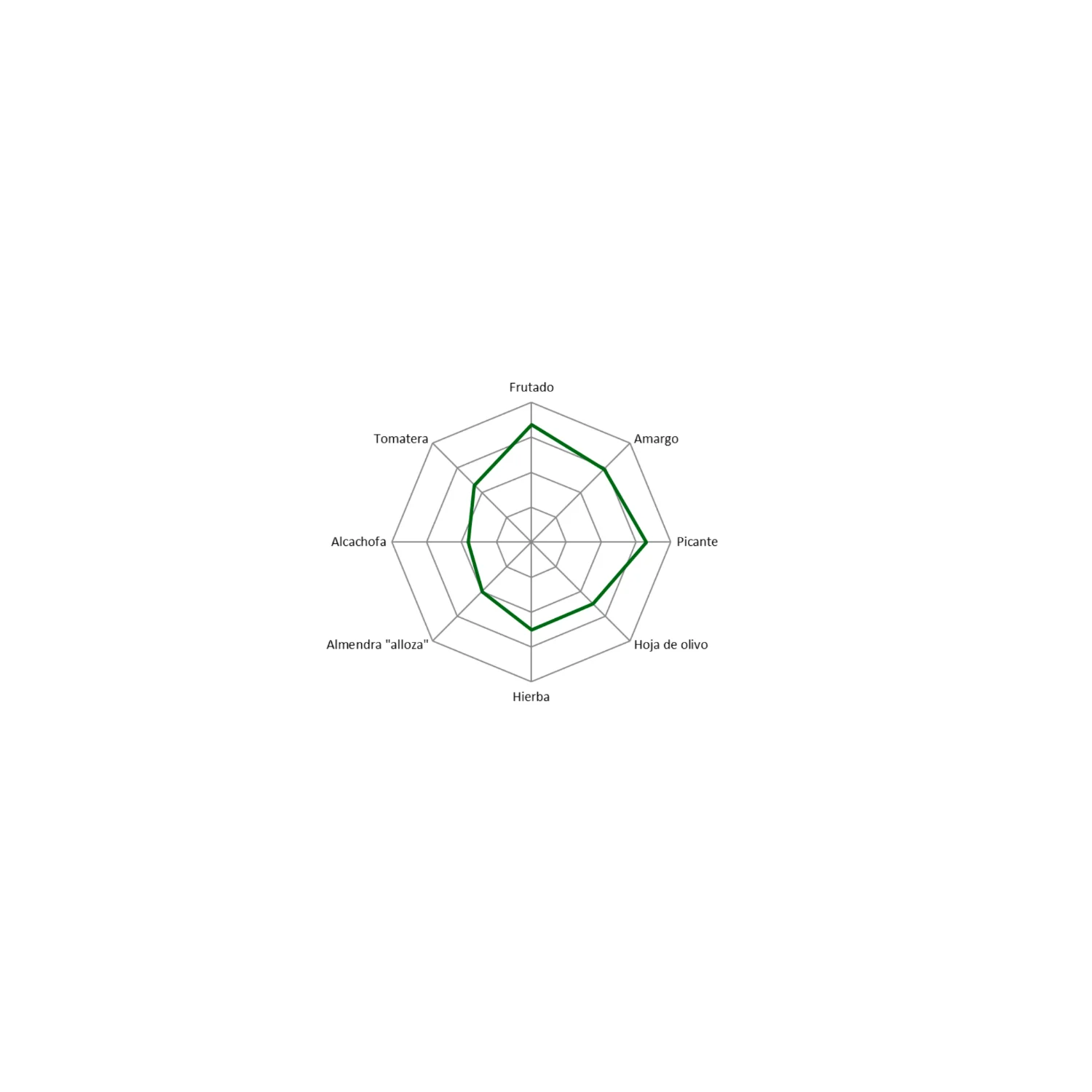 Se adelanta la cosecha a los meses de octubre y noviembre para así poder obtener mediante extracción en frío excelentes caldos de verdes esmeraldas y aromas de hierba recién cortada, tomatera y plátano.