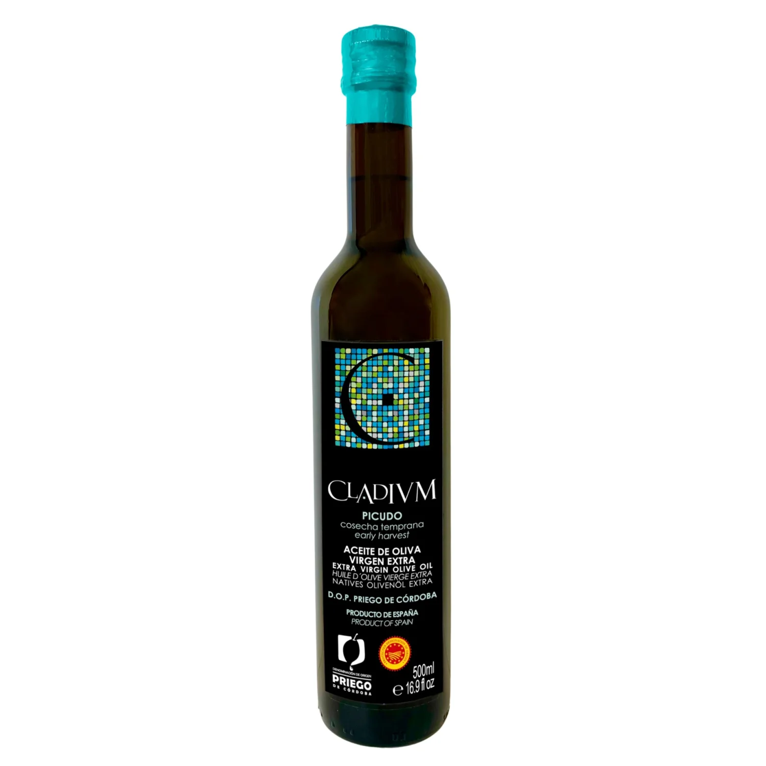 Cladivm Picudo es un aceite de oliva virgen extra premium de cosecha temprana, frutado verde medio con tonos maduros. Elaborado exclusivamente con aceitunas de la variedad picudo autóctona de la zona de Priego de Córdoba, el resultado es un aceite fino, elegante, y muy equilibrado en su conjunto.