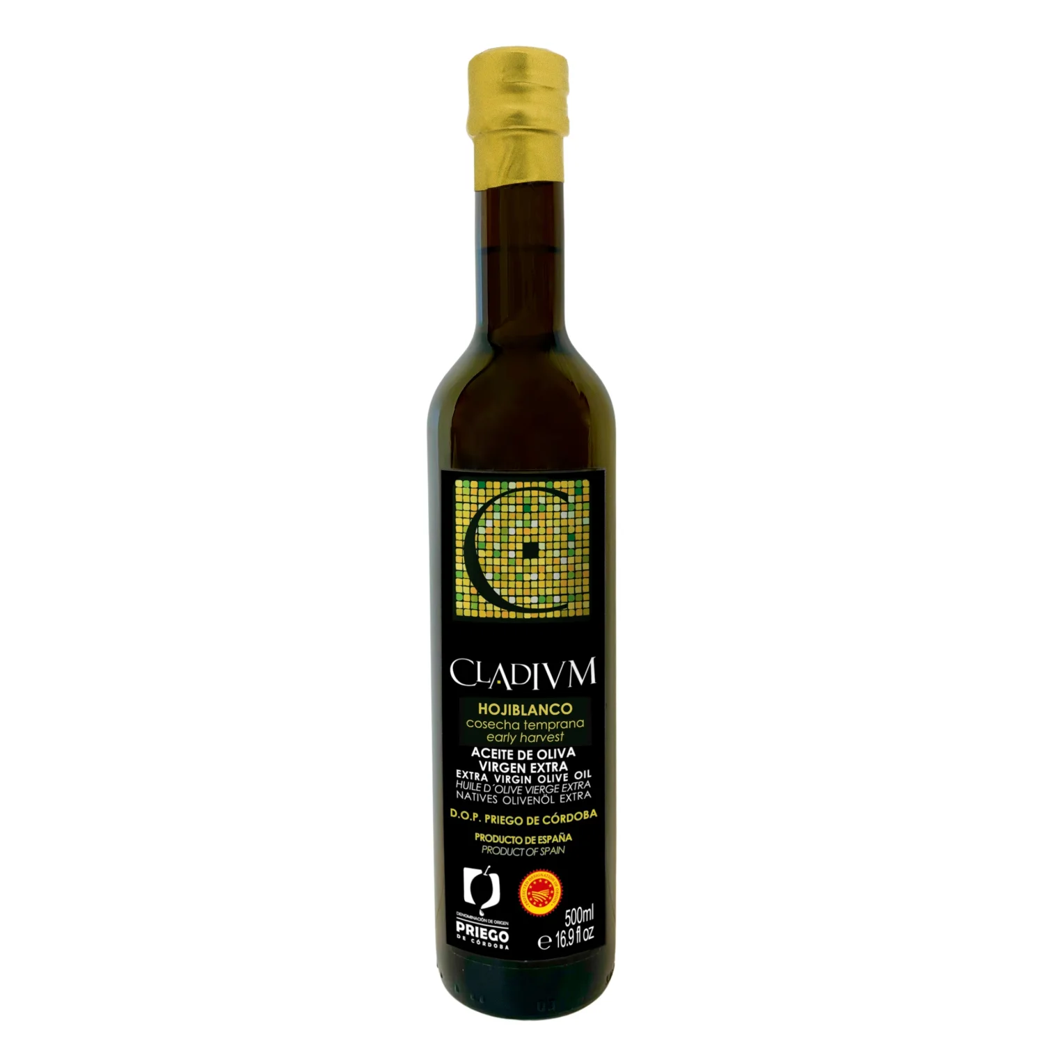Cladivm Hojiblanco es un aceite de oliva virgen extra premium de cosecha temprana, frutado verde intenso. Elaborado exclusivamente con aceitunas de la variedad hojiblanca en Priego de Córdoba, el resultado es un aceite muy aromático, sabor intenso y de fuerte personalidad, amargo y picante de intensidad media.