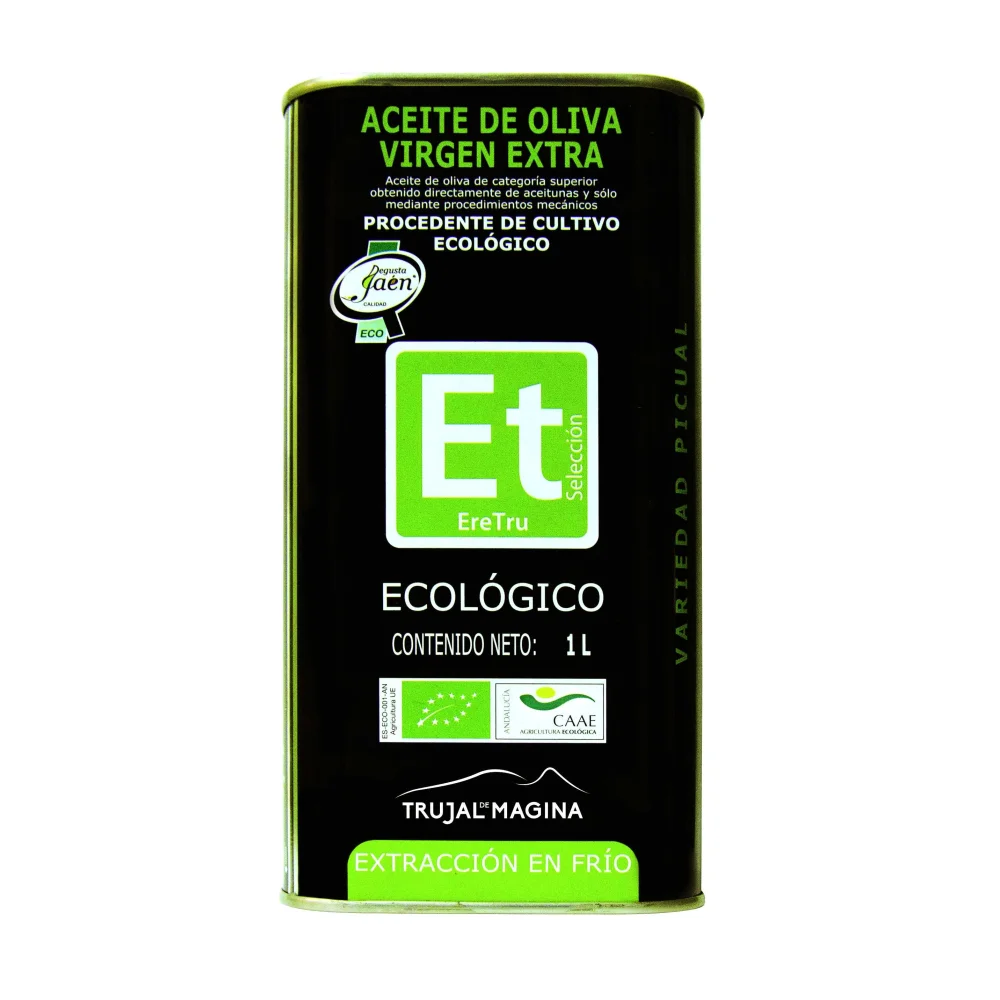 Eretru es un aceite de oliva virgen extra de producción ecológica obtenido por extracción en frío entre 22ºC y 24ºC, de aceitunas de la variedad picual recolectadas en su momento óptimo de maduración en los meses de Octubre y Noviembre. Alto contenido en antioxidantes y polifenoles.