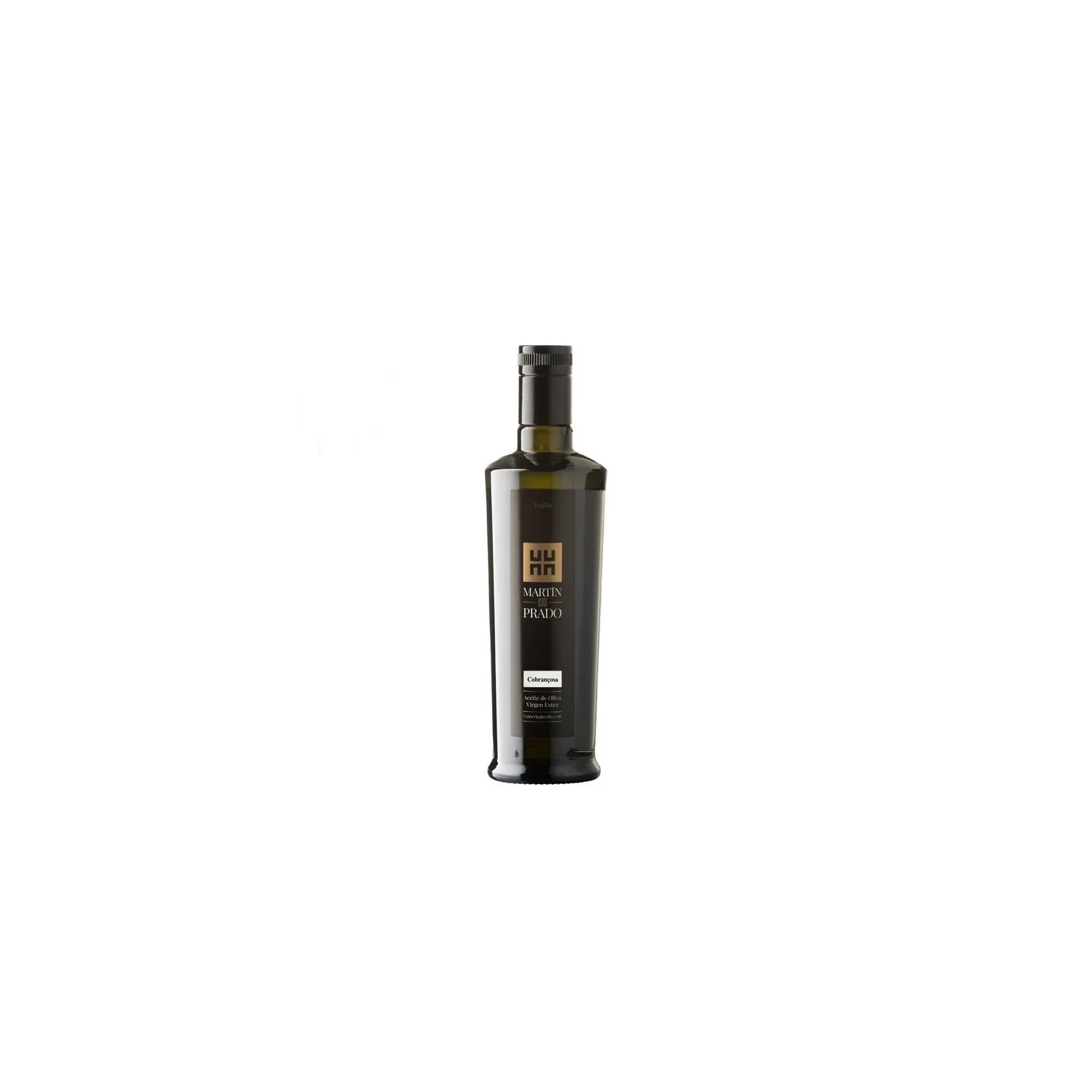 Aceite virgen extra monovarietal Cobrançosa. Elaborado y envasado en la almazara situada en la localidad cacereña de Trujillo.