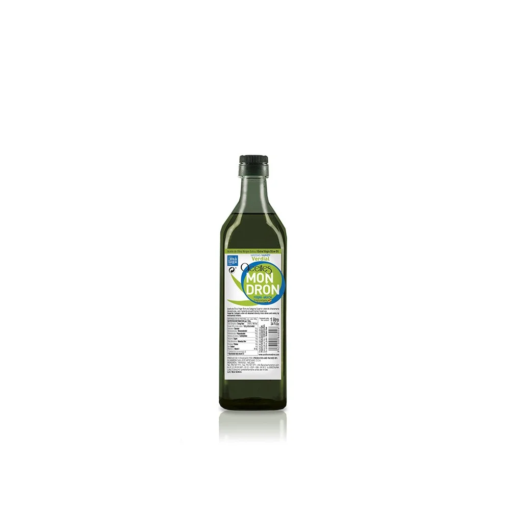 El aceite Verdial de Mondrón es un virgen extra monovarietal de aceituna verdial, obtenido mediante extracción en frío solo por procedimientos mecánicos, presenta aroma frutado maduro y leve picor y amargor.