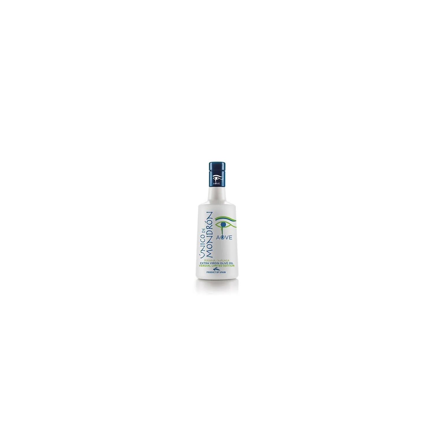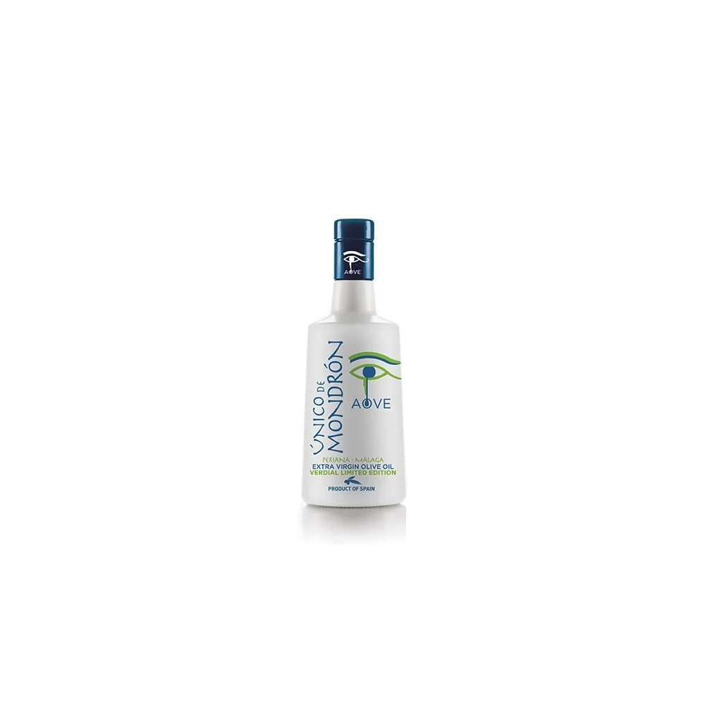 Único de Mondrón es un aceite virgen extra premium elaborado con aceitunas procedentes de olivos de montaña de la exclusiva variedad Verdial de Vélez, recolectadas en los meses de octubre y noviembre, periodo temprano donde esta aceituna regala su más intenso tesoro, sus matices verdes y frescos.