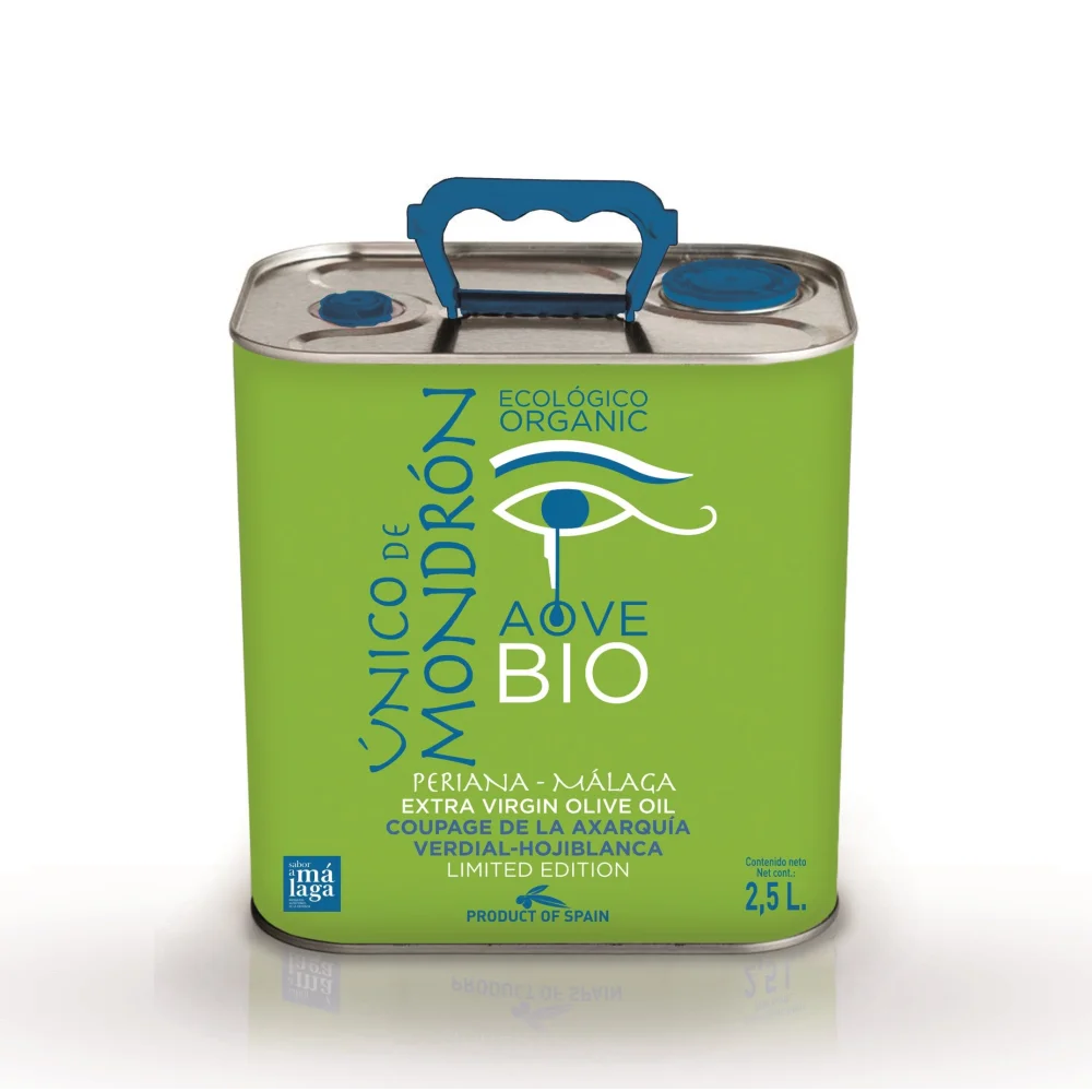 Único de Mondrón Bio es un aceite virgen extra ecológico coupage procedente de olivos de montaña de la exclusiva variedad Verdial de Vélez y la prestigiosa Hojiblanca, a partir de aceitunas recolectadas la primera semana de noviembre,