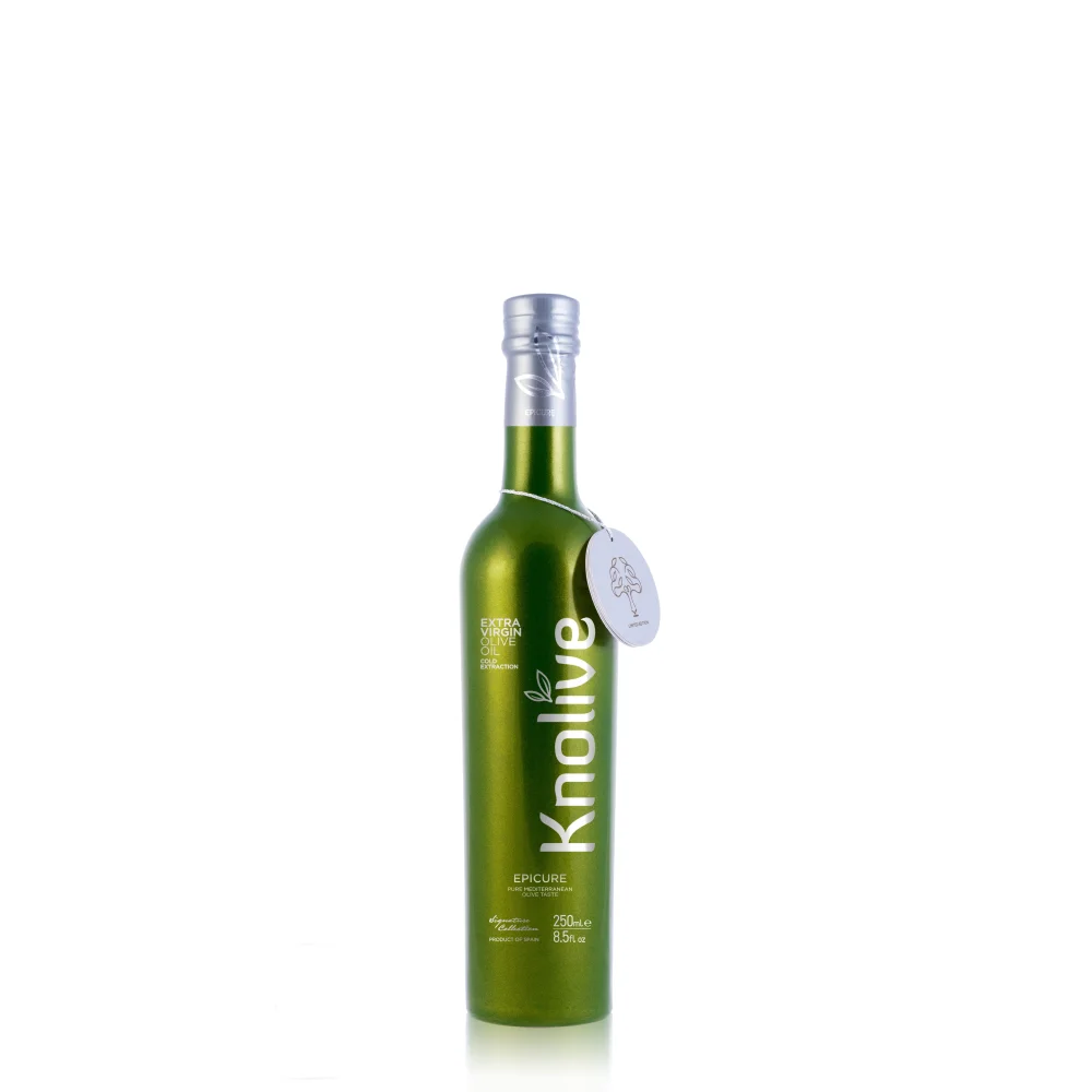 En nariz presenta notas aromáticas a frutas como la manzana y la aceituna verde madura. En boca el aceite knolive epicure cuenta con un sabor a tomate, hierba recién cortada y almendra fresca, dejando un ligero retrogusto amargo y picante.