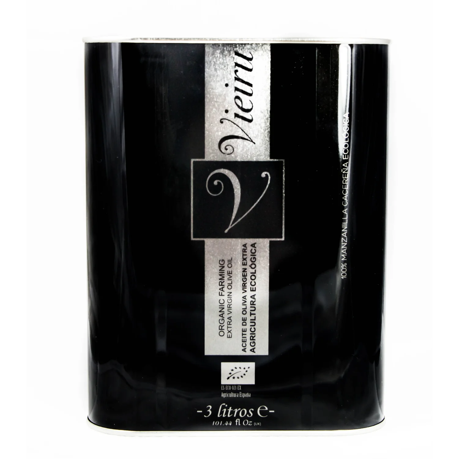 El aceite virgen extra premium Vieiru ecológico se elabora exclusivamente con aceituna en envero (final Octubre) de la variedad manzanilla cacereña. Es un aceite temprano de Primera Extracción en Frío.