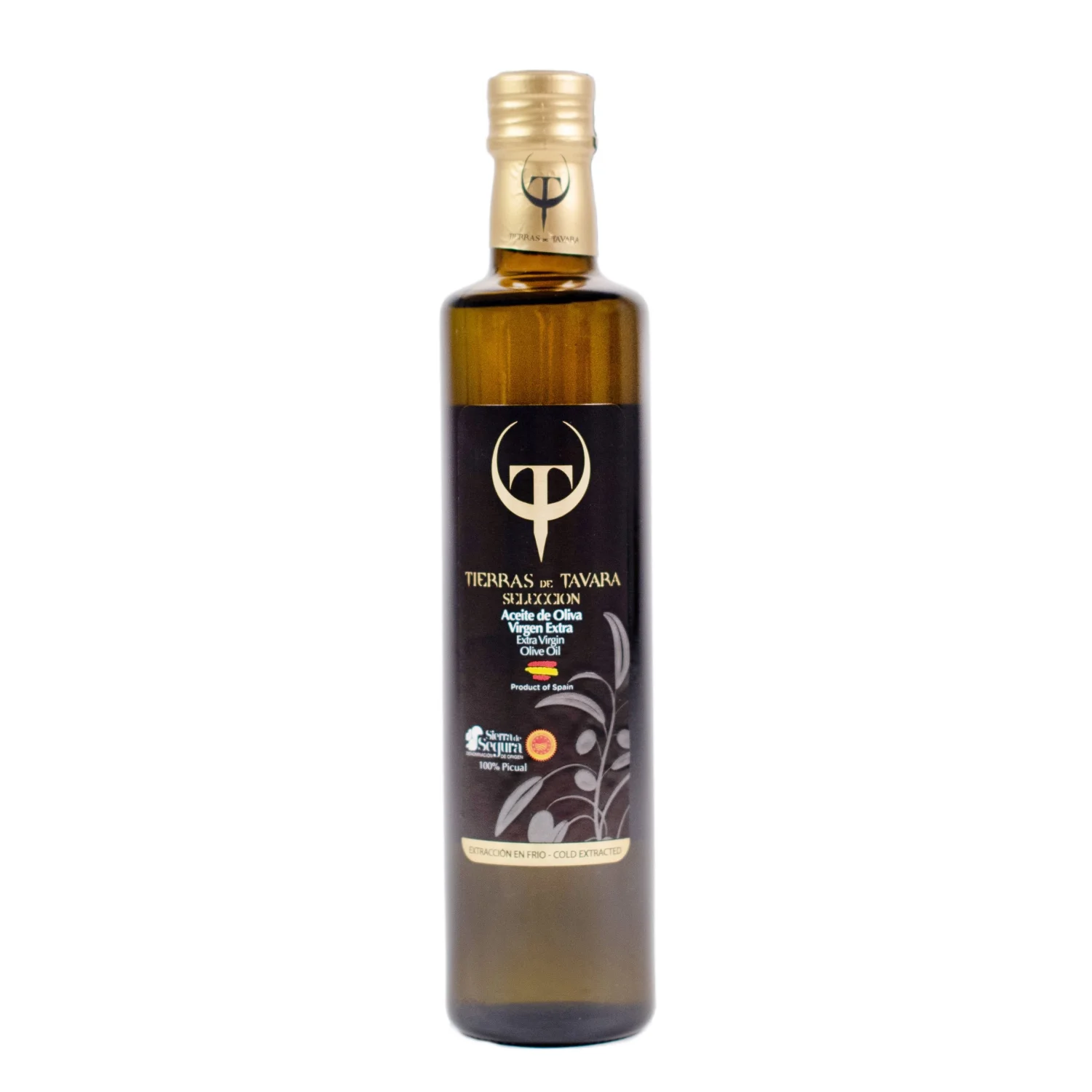 Tierras de Tavara Selección es un Aceite de Oliva Virgen Extra producido de forma tradicional y natural, conservando así todas las características organolépticas de la aceituna. Cuenta con un exquisito sabor a aceituna verde, ligeramente amargo, picante y muy equilibrado.