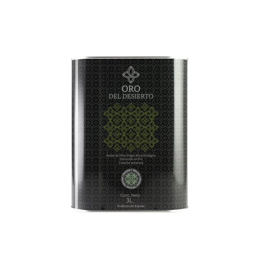 Aceite de oliva virgen extra ecológico de producción limitada, procedente exclusivamente de aceitunas picuales cosechadas en envero temprano en la finca “el vicario” propiedad de la empresa.