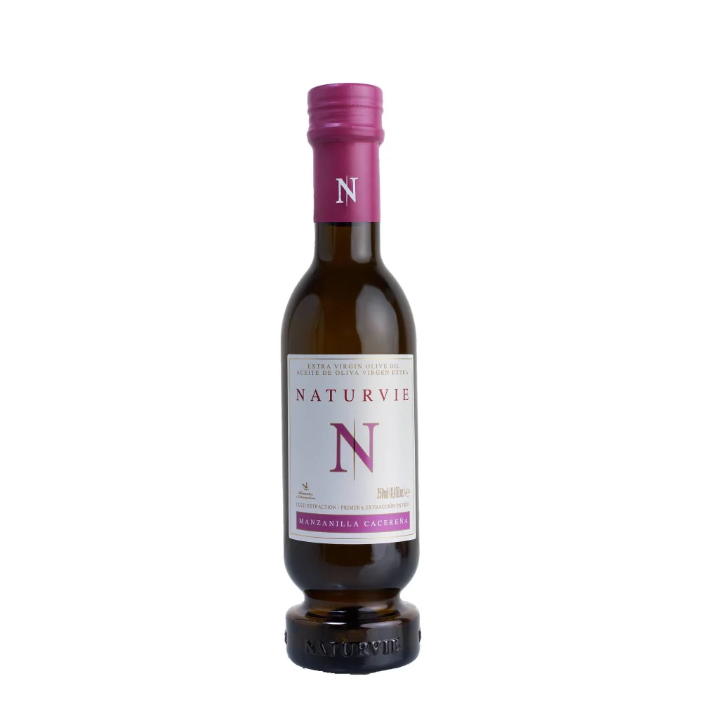 El Aceite Virgen Extra Naturvie de variedad Manzanilla Cacereña es un aceite muy aromático, especialmente aromas frutales. Al ser de cosecha temprana presenta un suave y agradable picor y amargor.