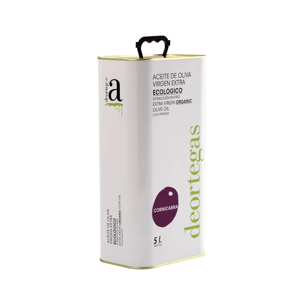 Aceite de oliva virgen extra ecológico de cosecha temprana. Monovarietal cornicabra. Elaborado por la Almazara Deortegas en Yecla, Murcía.