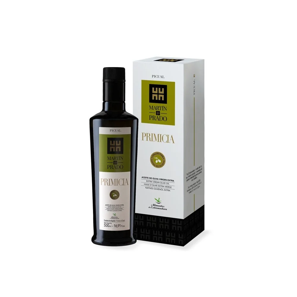 El aceite premium Martín de Prado Primicia Picual es un AOVE monovarietal de cosecha temprana de octubre.