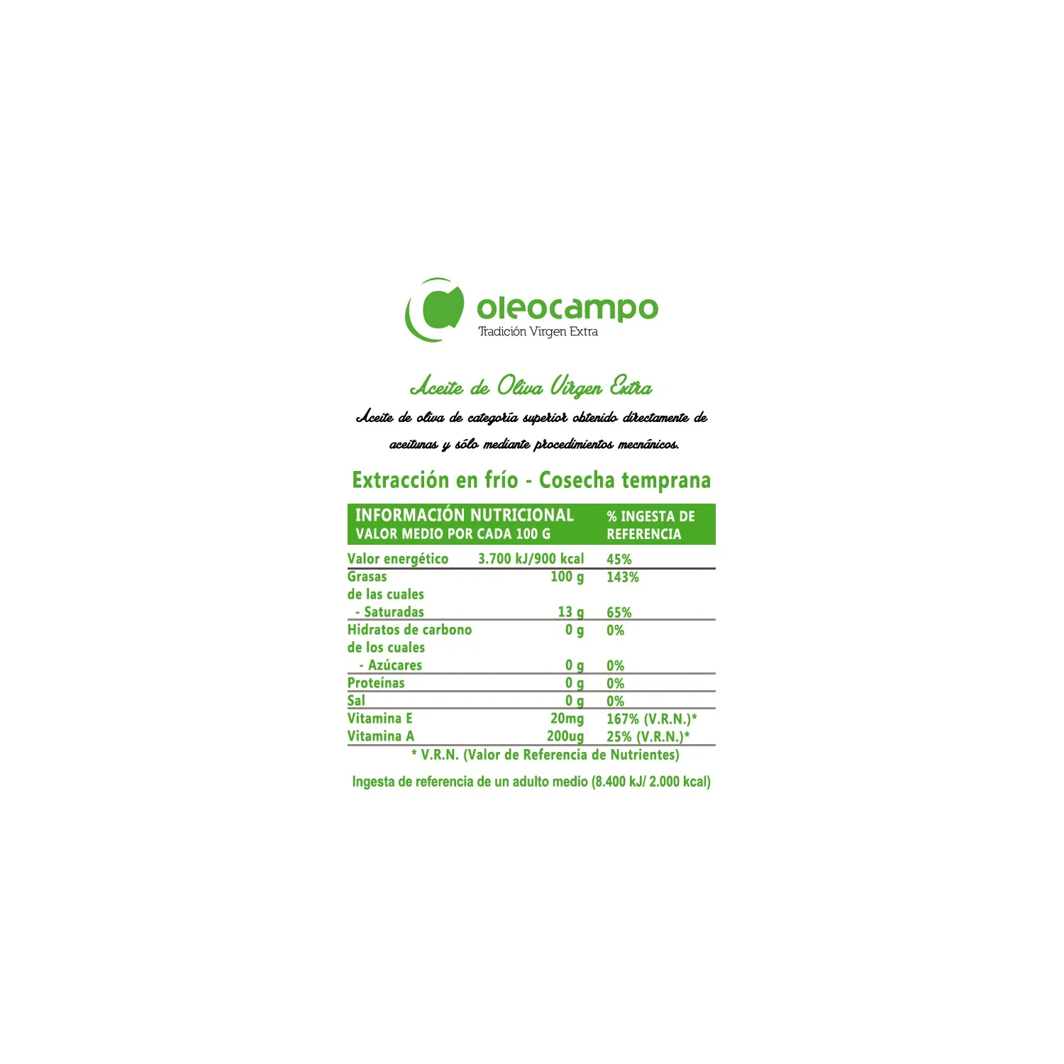 Oleocampo Premium Edición Limitada es un aceite de cosecha temprana extraído en frío y solo mediante procedimientos mecánicos de aceitunas recogidas en en el mes de octubre, lo que da como resultado un aceite frutado, muy armónico y de gran complejidad.
