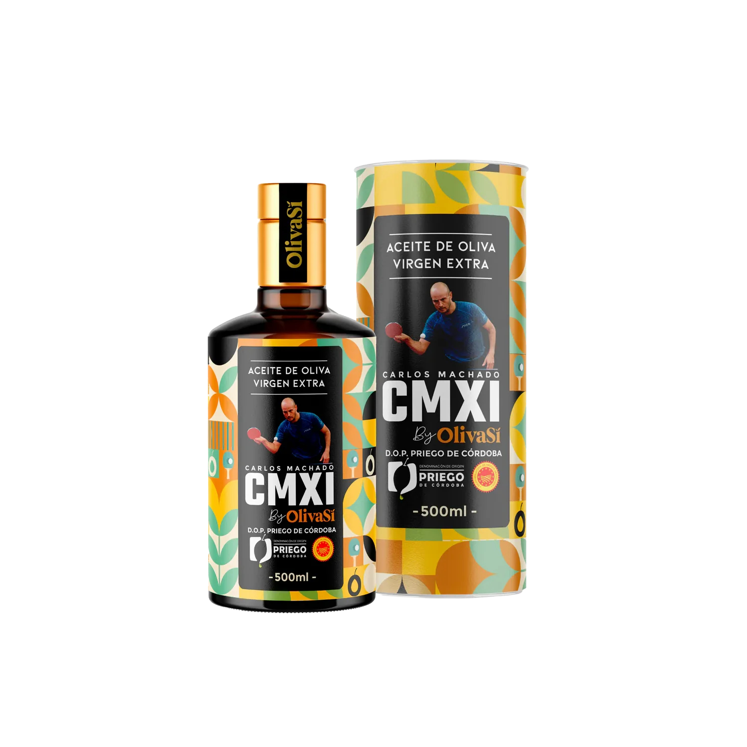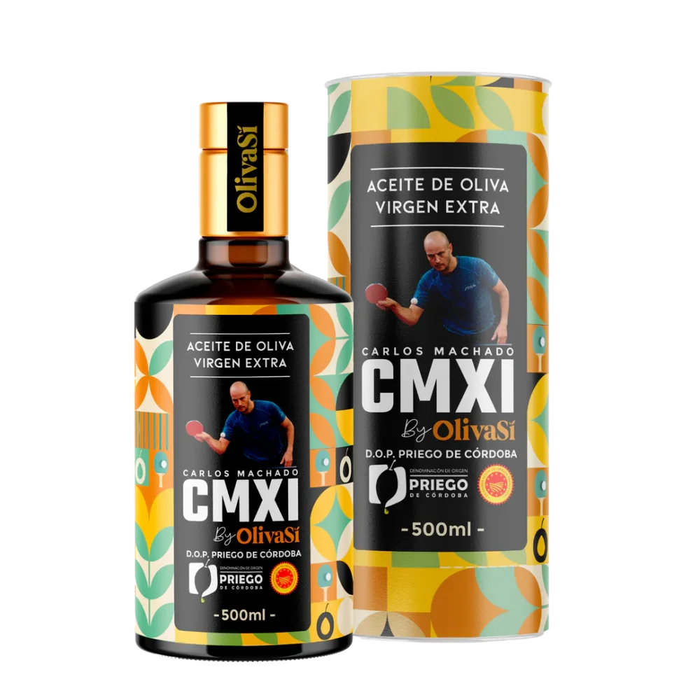 Descubre la edición especial OLIVA SÍ Carlos Machado "CMXI", un aceite de oliva virgen extra único con Denominación de Origen Priego de Córdoba. Inspirado en la trayectoria del 11 veces campeón de España en tenis de mesa, Carlos Machado, este aceite premium encarna los valores de dedicación, constancia y pasión
