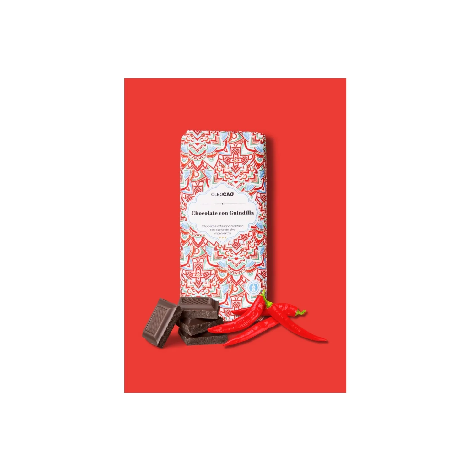► Características del chocolate negro artesano con aceite de oliva virgen extra y guindilla
