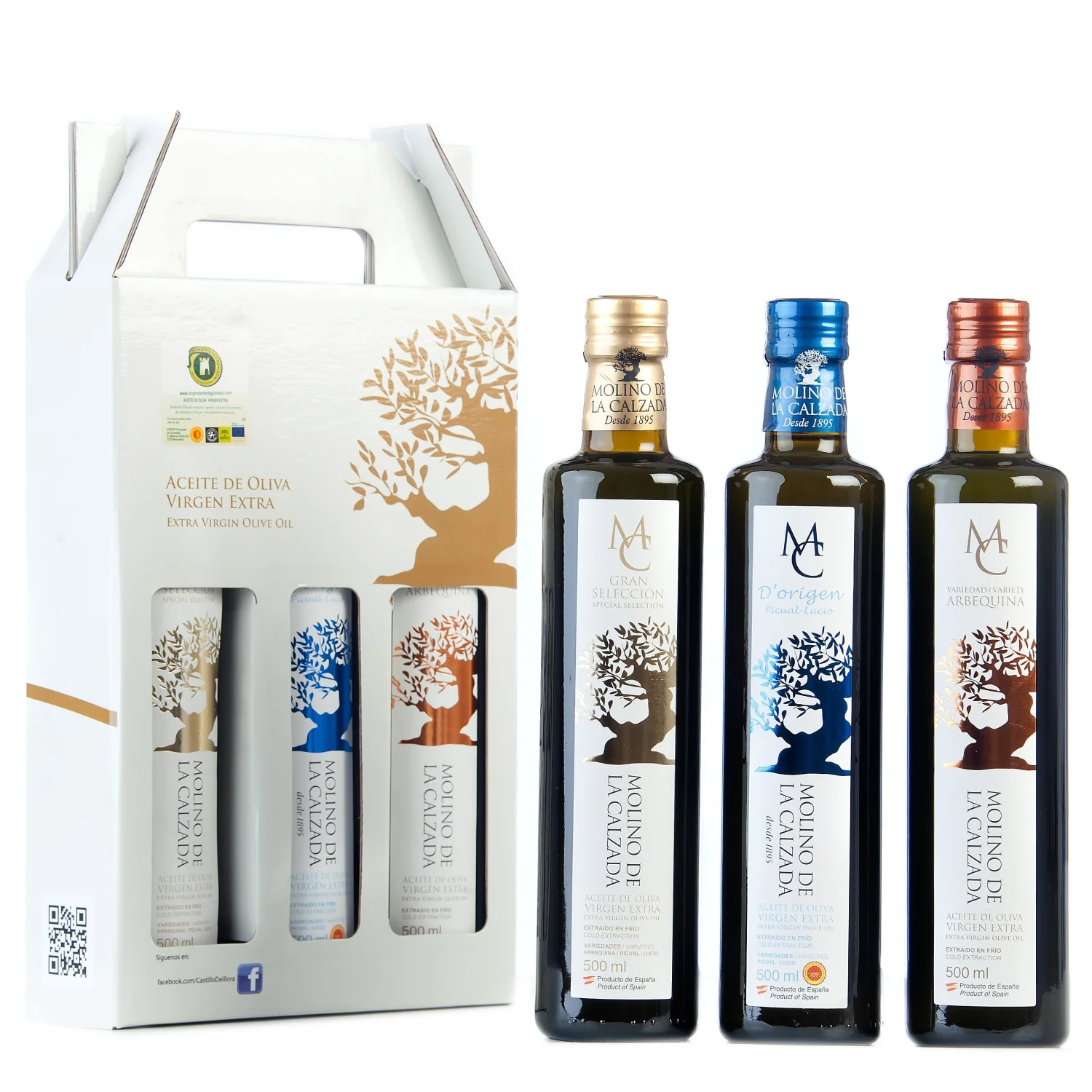 Molino de la Calzada es una gama de aceites de oliva virgen extra premium de cosecha temprana, de un tono verdoso brillante por su mayor contenido de clorofila, con una acidez de 0.1-0.2, con un olor y sabor más pronunciado, que lo hacen ideal para tomarlo en crudo.
